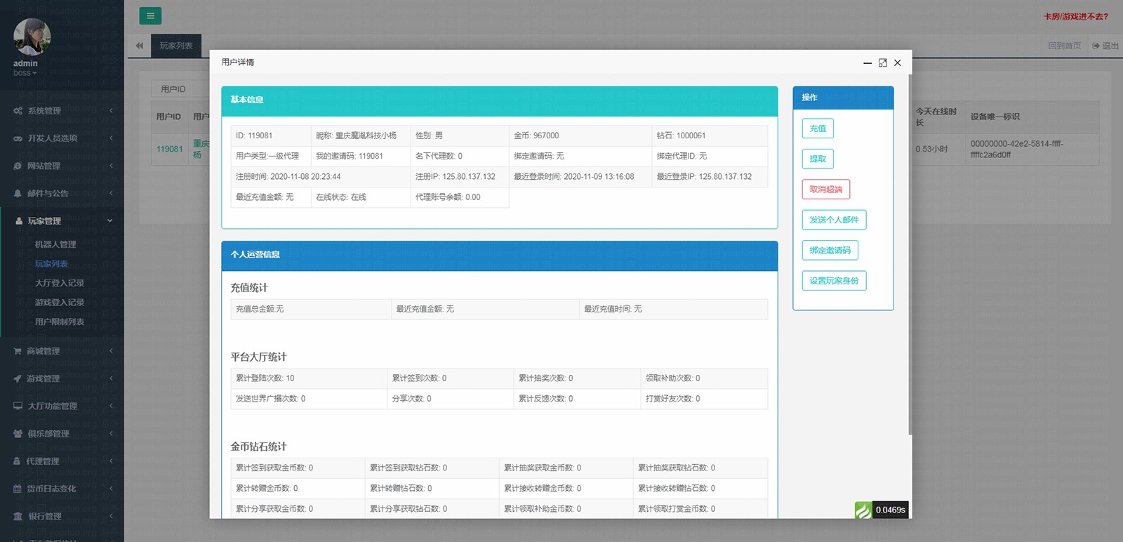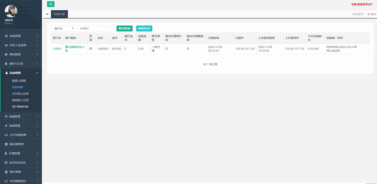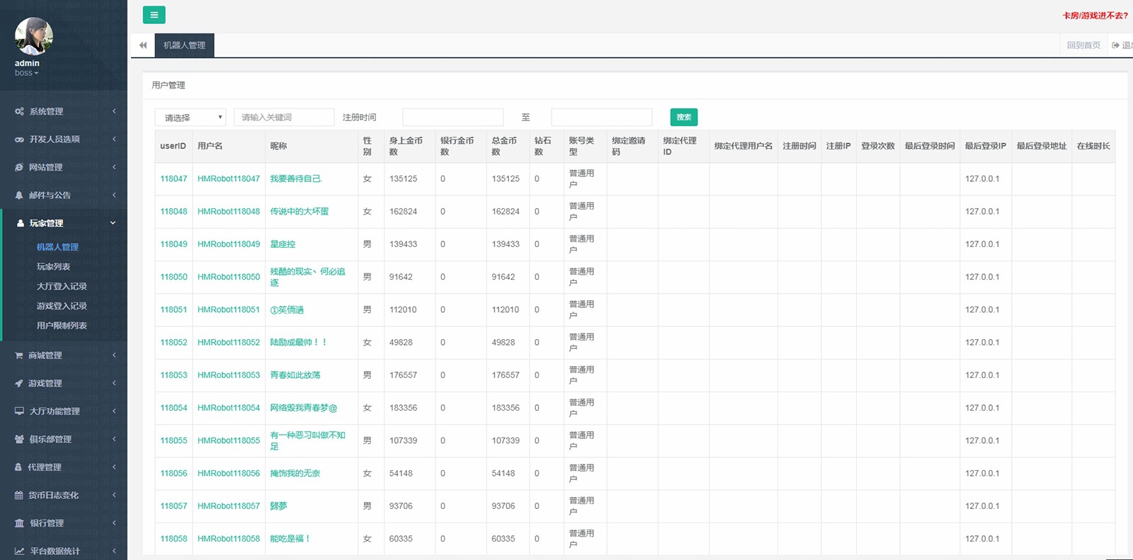 后台玩家列表截图: