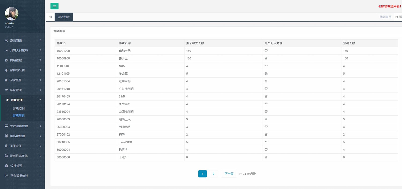 后台游戏列表截图: