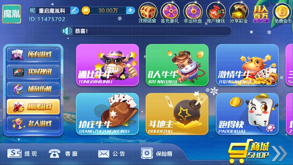 猫娱乐系列版本整合发布,可以使用统一服务端以及游戏数据,多个版本主要是客户端UI的区别,同时发布多个版方便任意替换或做修改等操作,只有提供更多数据运用,非常有利于搭建,猫娱乐系列版本分为财神娱乐版、刀锋版、奇门版、旗舰版、钻石版,具体可以参考以下每个版本截图。