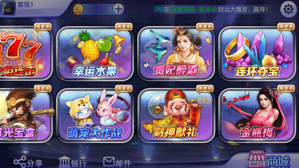 | 蜀都电玩城系列版本整合发布,本合集服务端同时兼容9320版 857版,内附蜀都解密工具,两个版本主要区别:客户端UI设计,以及子游戏数量。多版本结合使用更有助于提高运营策略,客户端UI可以随便切换,或增减子游戏数量,具体请参考以下展示截图。 蜀都9320版本展示截图: ![]() ![]() ![]() ![]()