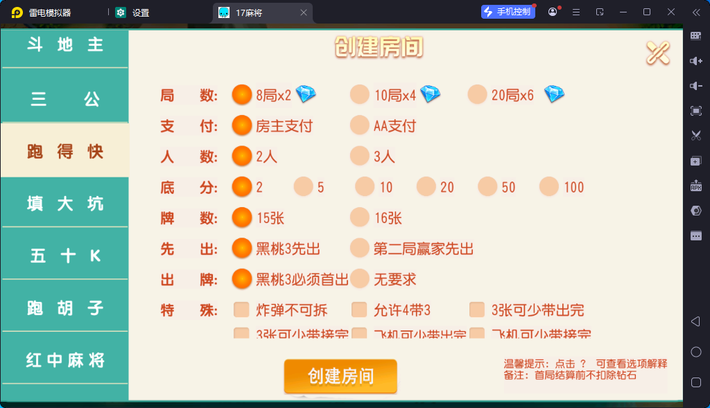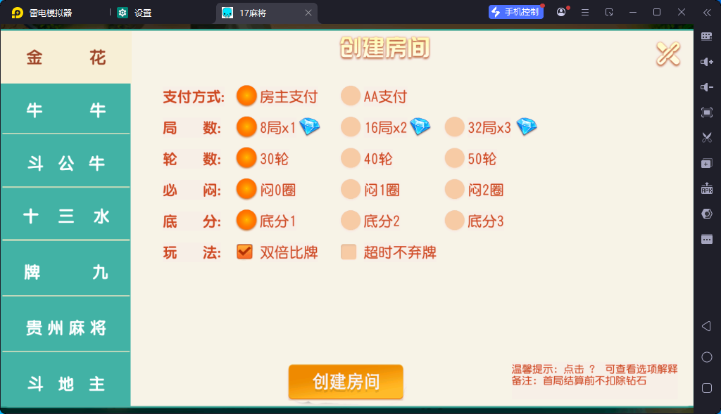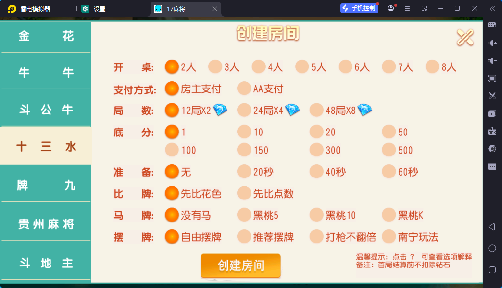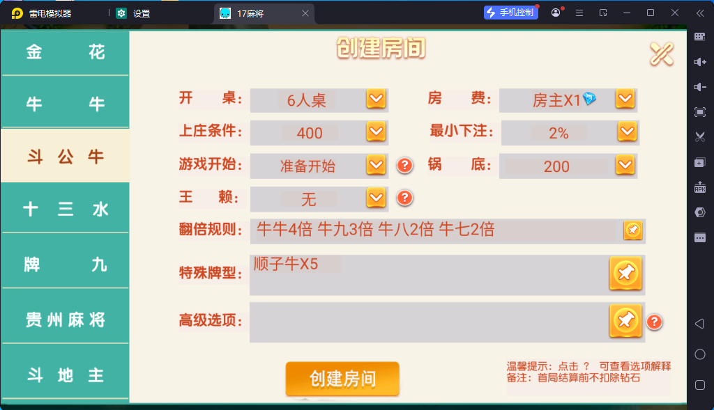 内含游戏:牛牛,三公,炸金花,跑得快,斗地主,十三水,福建十三水,浙江十三水,血战麻将,长沙麻将,比鸡,推筒子,贵州麻将,红中麻将,卡五星,510K,跑胡子,斗公牛,填大坑,牌九,十点半